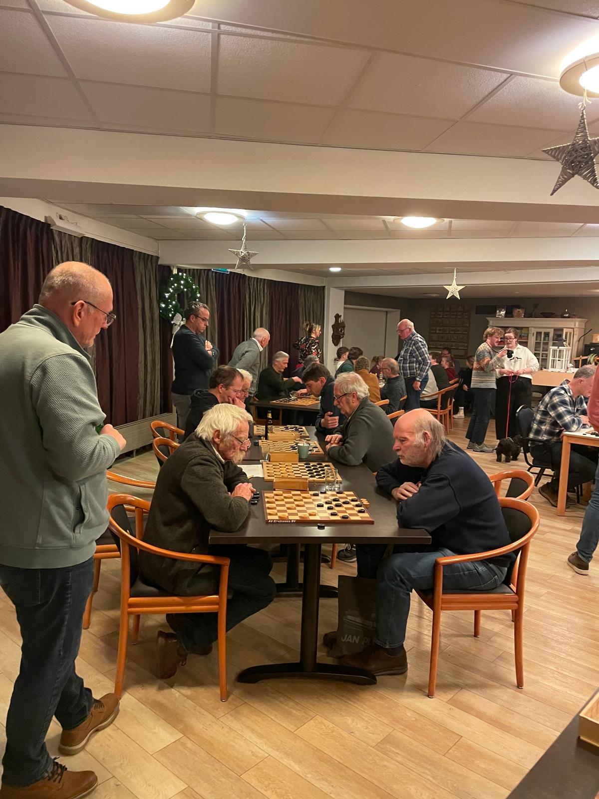 Maandagavond 29 december organiseerde Damclub Ons Genoegen uit Middelstum in het gebouw van woonzorgcentrum Hippolytushoef een Kerstgongdamtoernooi. Hier gold 10 seconden bedenktijd per zet, waarbij de groepen van 8 deelnemers een rondtoernooi afwerkten. Jan Starke uit Oude Pekela, Jilje Scheeringa uit Finsterwolde en Geert Lubberink uit Winschoten namen hier aan deel.