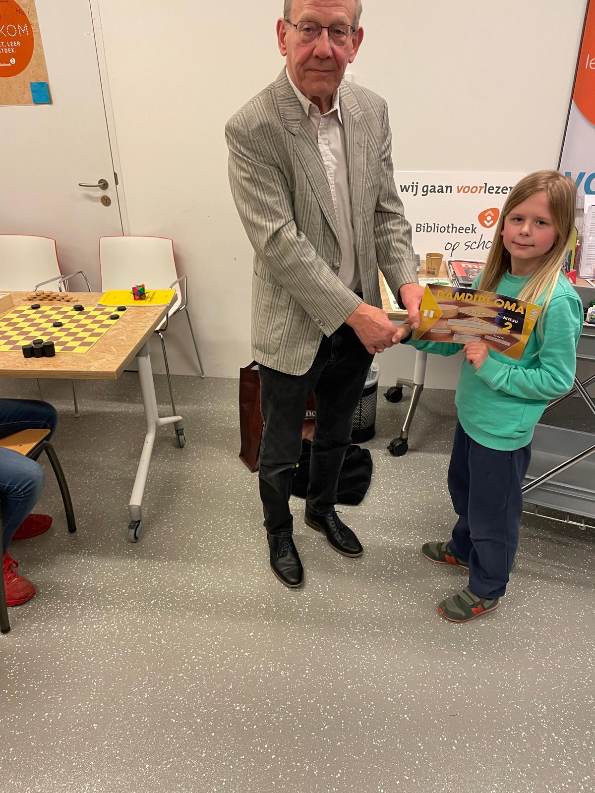 Woensdagmiddag 11 maart mochten Moos 10 jaar en Pavlo 11 jaar beide wonend in Winschoten, na een succesvol gemaakt examen, in de “cursusruimte” van bibliotheek Winschoten een damdiploma in ontvangst nemen. Dit is overigens een samenwerkingsverband tussen bibliotheek Winschoten en Damclub Winschoten. Moos slaagde voor damdiploma niveau 2, oftewel Wiersma wit en Pavlo voor diploma niveau 4, oftewel Sijbrands wit. Moos en Pavlo zijn beide onlangs begonnen met de damcursus, respectievelijk niveau 3 en niveau 5